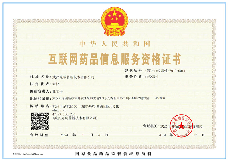 互聯(lián)網(wǎng)藥品信息服務(wù)資格證書 證書編號:(鄂)-非經(jīng)營性-2019-0014